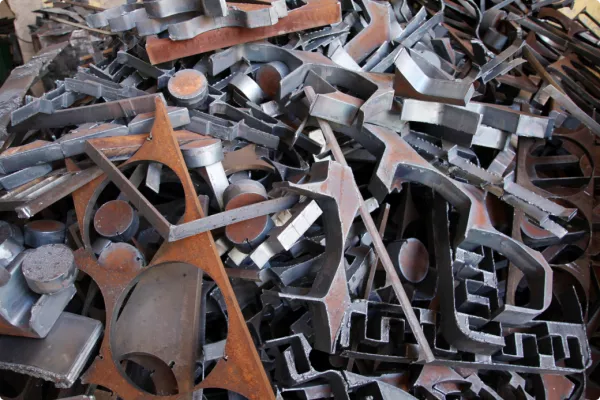 Do železného šrotu patří recyklovatelné kovy, například stará vozidla, konstrukce, plechy a spotřebiče.